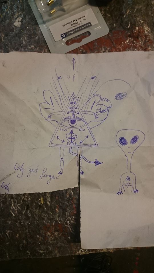 ….so – that was a long story. The “funny” thing about it – and the reason I write the blog post – is that the guy who drew this in his workshop knew NOTHING about the third eye, about the power of the pyramids, etc. – It just came out of his hand, when he drew – and he COULDN’T DRAW A LICK. Amazing how Satan can have an effect like that….!